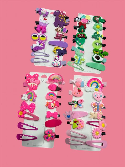 Este set incluye 14 pasadores con muñequitos tiernos, cada uno con detalles adorables que harán brillar la creatividad de cualquier niña. Desde personajes entrañables hasta colores vibrantes, este conjunto es ideal para agregar un toque de fantasía y diversión a los looks diarios de las más pequeñas.