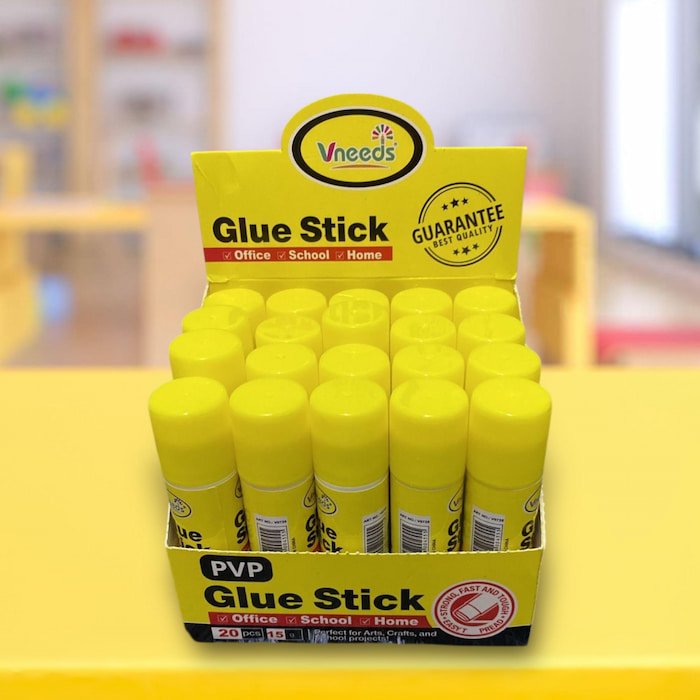 Pegamento en barra de 15g, viscoso y de excelente calidad, ideal para uso escolar, de oficina o manualidades.