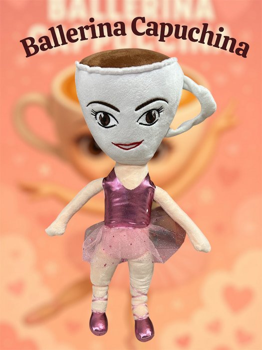 Peluche del personaje Ballerina Capuchina de excelente calidad, con textura suave y agradable. Ideal para regalar o coleccionar.