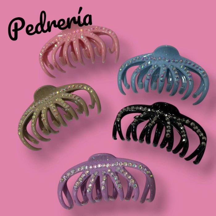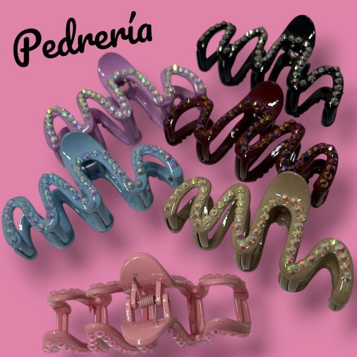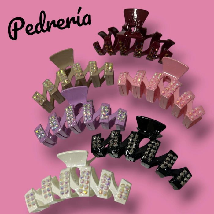 Pinza con pedrería en varios diseños, perfecta para añadir un toque de glamour y elegancia a tu peinado. ¡Brilla con estilo en cada detalle!