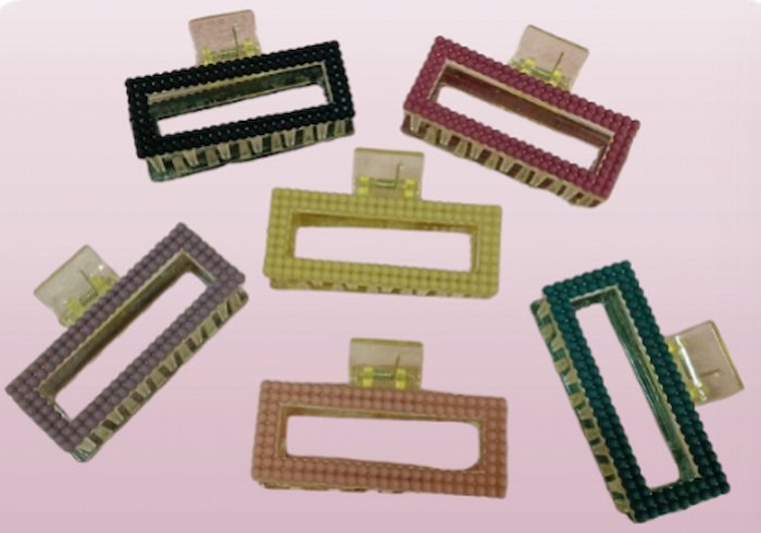 La pinza cuadrada para el cabello es un accesorio práctico y estilizado, ideal para sujetar el cabello de forma segura. Su diseño moderno y resistente asegura un agarre firme, perfecta para crear peinados sencillos o elaborados con comodidad.