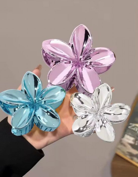 Pinza de flor en color metálico, un accesorio elegante y moderno para el cabello, que aporta un toque sofisticado y brillante a cualquier peinado.