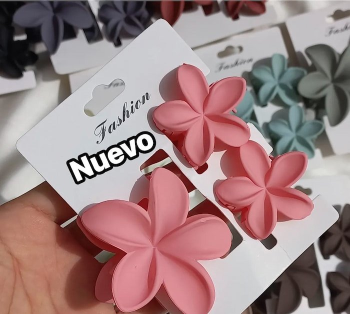 Set de 3 pinzas para cabello en forma de flor, colores mate, incluye 1 grande y 2 chicas. De plástico resistente y duradero, ideal para cualquier peinado.