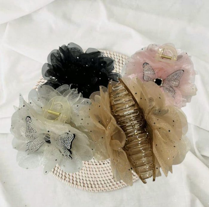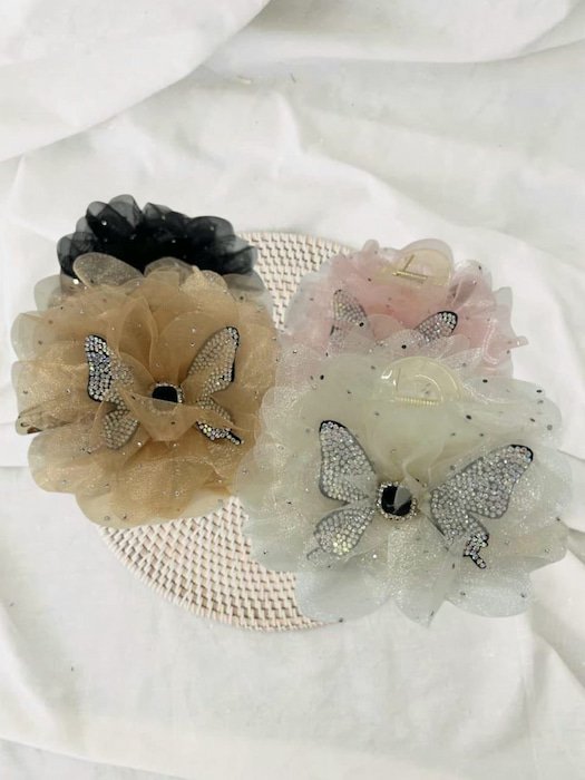El diseño de esta pinza es simplemente irresistible. Con un delicado detalle de tull y una mariposa adornada con piedras brillantes, este accesorio captura la luz y destaca en cualquier entorno. Ya sea para una cena elegante, una reunión de trabajo o un evento festivo, esta pinza complementa tu atuendo de forma ideal. El detalle de la mariposa representa la ligereza y la belleza, mientras que el tull ofrece una textura suave y única, haciendo que este accesorio sea tanto atractivo como funcional.