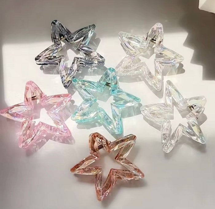 Transforma tu rutina de cuidado del cabello con esta hermosa pinza para el cabello de plástico en forma de estrella. Diseñada para ofrecer estilo y practicidad, esta pinza se convierte en el accesorio perfecto para mantener tu cabello recogido mientras añades un toque de elegancia a tu look cotidiano.