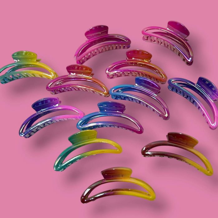 Pinza tornasol con diseños únicos y colores brillantes. Perfecta para añadir un toque de estilo y originalidad a tu look. ¡Diversión y elegancia en cada detalle!