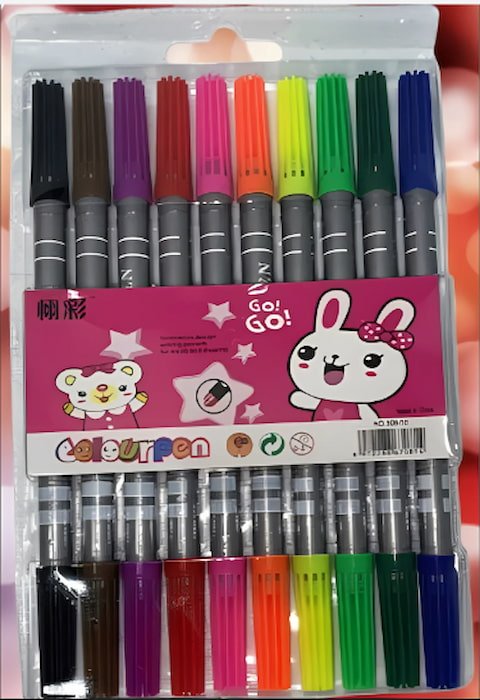 Set de 10 plumines de doble punta en colores surtidos, perfectos para dibujar, escribir y resaltar con precisión y creatividad.