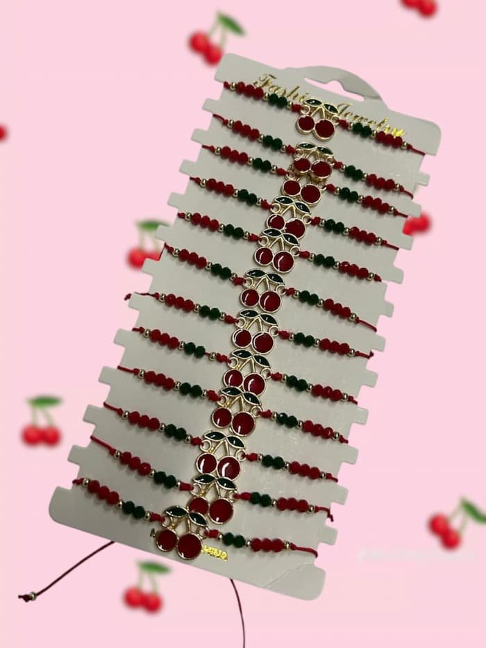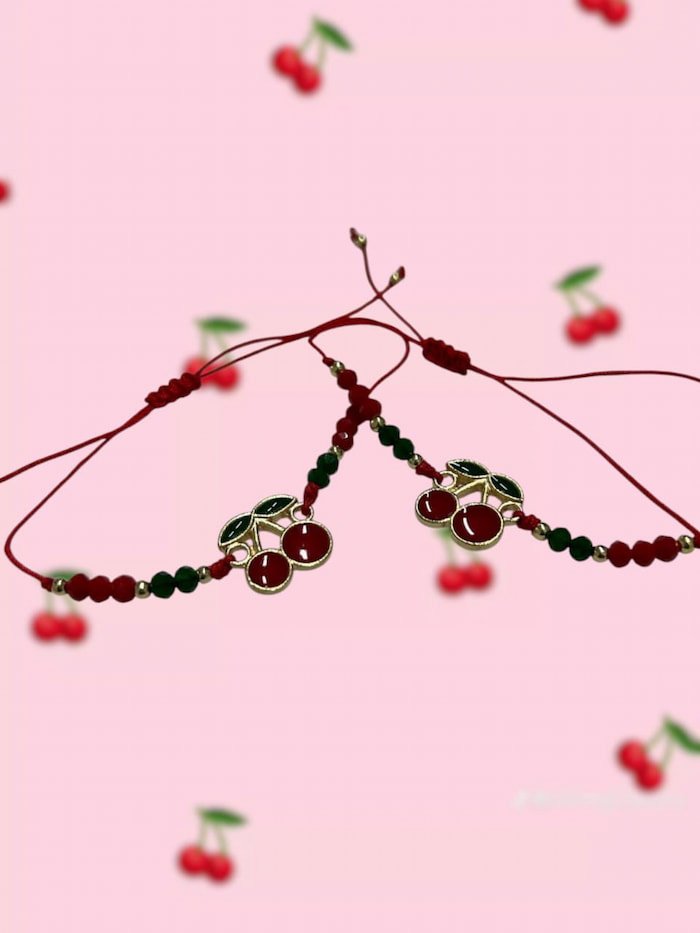 Pulsera de hilo con figura de cereza, encantadora y colorida. Combina un diseño divertido con un toque delicado, perfecta para añadir un detalle fresco y juvenil a tu estilo.