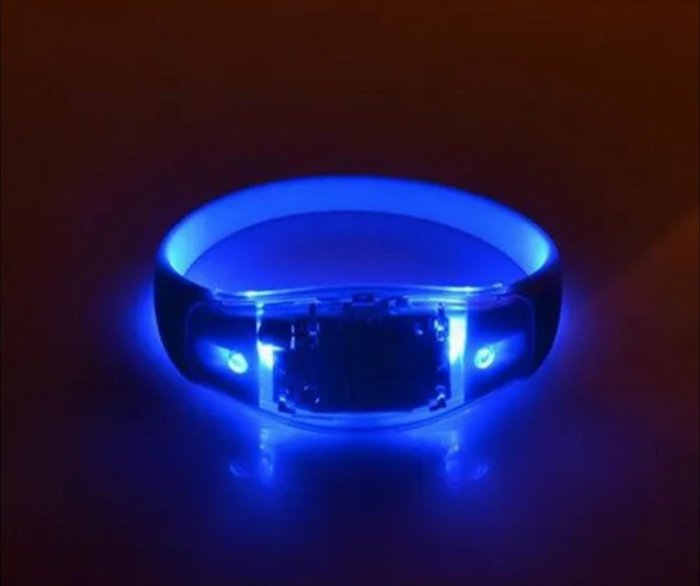 Pulsera LED que se ilumina y se sincroniza al ritmo de la música. Ideal para fiestas o eventos, ¡y se puede personalizar! Perfecta para crear un ambiente divertido y único.