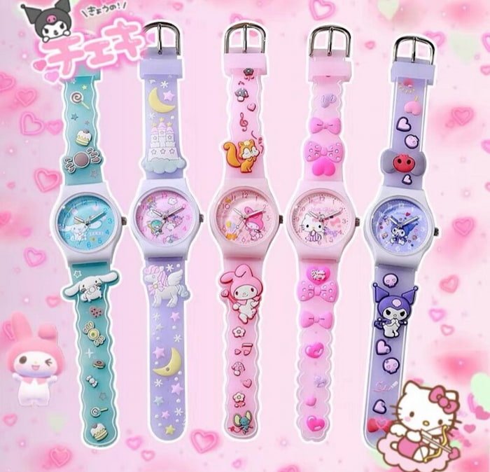 Reloj Infantil Sanrio, Colorido y divertido reloj con diseños de personajes Sanrio. Ideal para niños, cómodo y fácil de usar. Perfecto para aprender la hora con estilo.