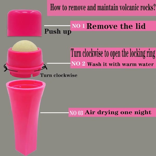 - Piedra Volcánica Natural: El rodillo está hecho de piedra volcánica auténtica, que actúa como un absorbente natural para eliminar el exceso de aceite y reducir el brillo en la zona T del rostro. Su textura única ayuda a controlar el aceite sin alterar el maquillaje.