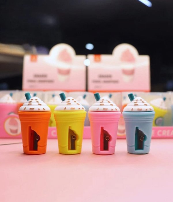 Sacapunta/Borrador con Diseño de Helado: Divertido sacapunta y borrador 2 en 1 con forma de helado, perfecto para añadir un toque dulce a tu estuche escolar.