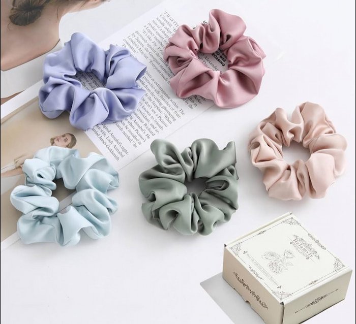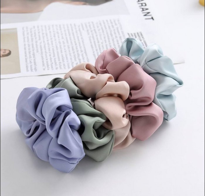 Scrunchie para el cabello en varios tonos tipo satín, de excelente calidad, suave y elegante, ideal para sujetar tu peinado sin maltratarlo y darle un toque sofisticado.