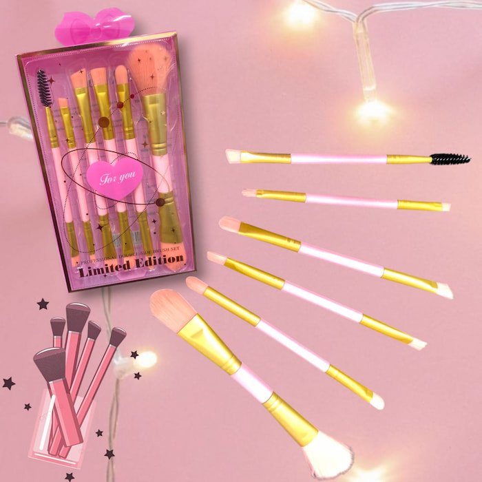 Set de 6 brochas con diferentes formas, perfectas para aplicar maquillaje con precisión. De muy buena calidad y acabado suave.