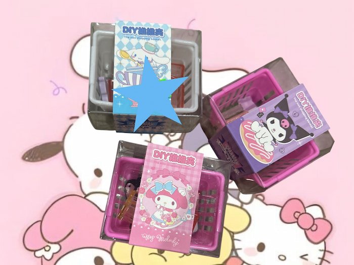 📎🎀 Set de clips con diseño de personajes Sanrio, incluye canastilla tipo estuche súper linda. Decorativos, funcionales y de excelente calidad. ¡Ideal para fans de Sanrio!