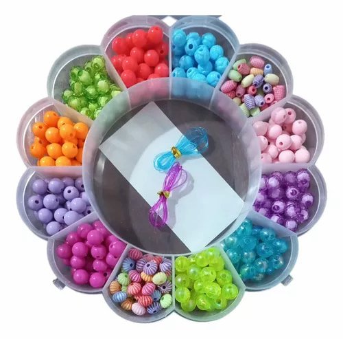 El set incluye una amplia gama de cuentas de diferentes formas y tamaños, además de hilos elásticos y cierres. Todo lo necesario para dejar volar tu creatividad y confeccionar pulseras hermosas.