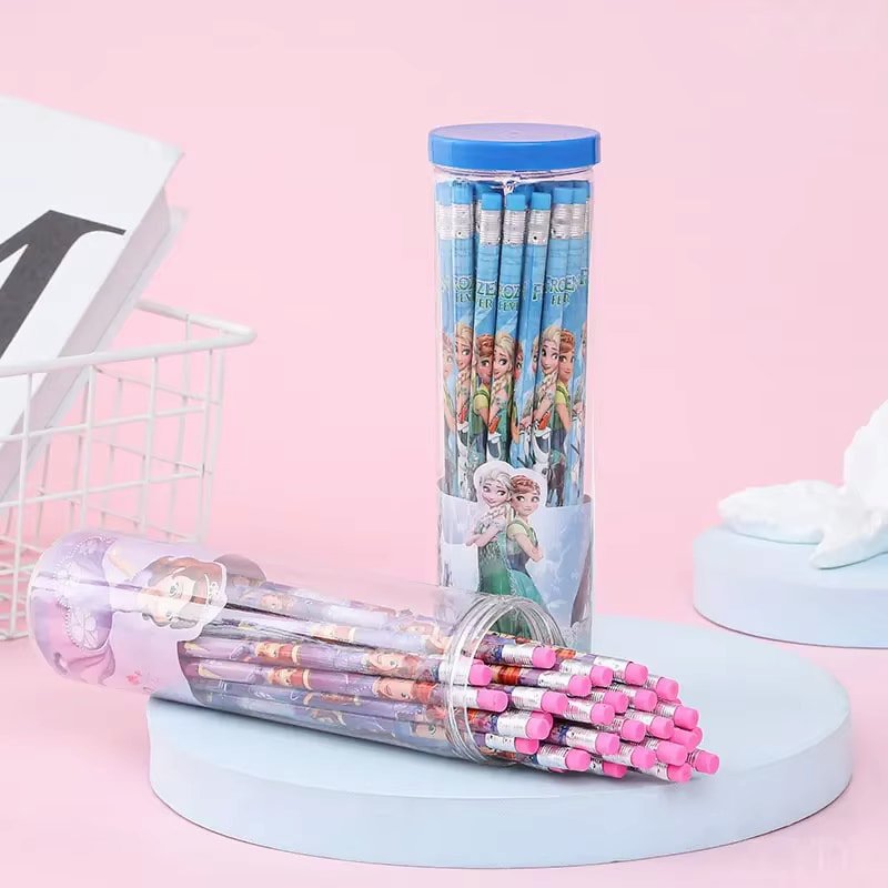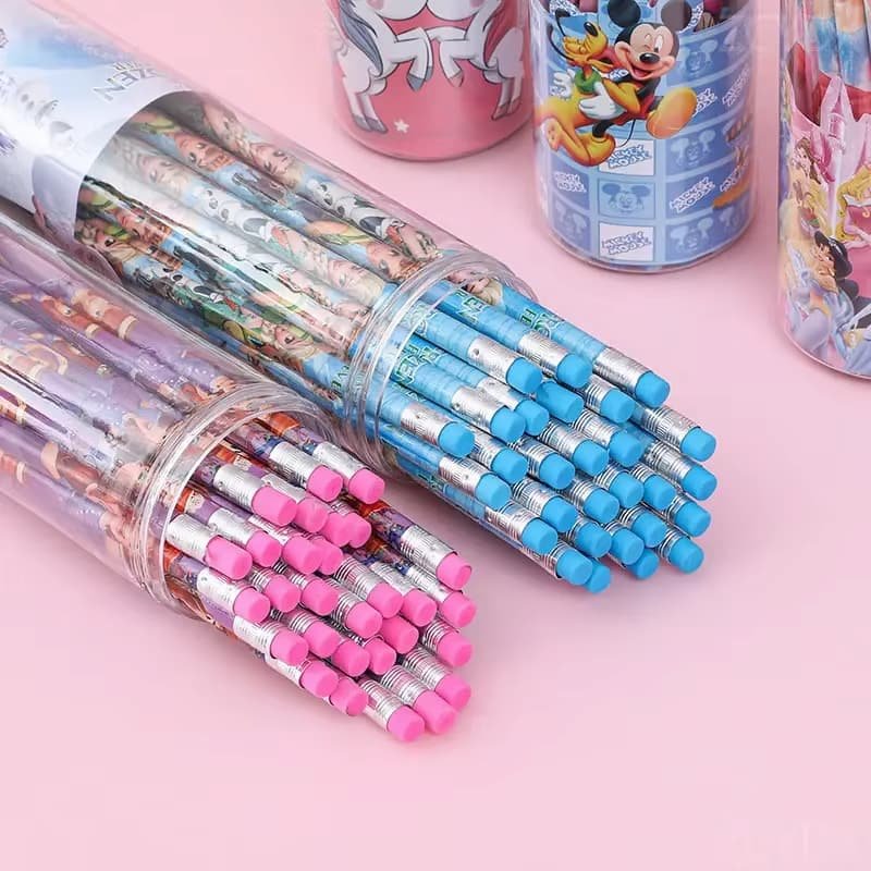 Este set de lápices de 30 piezas en un bote, decorado con varios personajes, es ideal para estudiantes, artistas jóvenes y coleccionistas que buscan una combinación de funcionalidad y diversión en sus herramientas de dibujo y escritura.