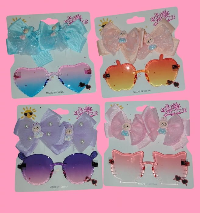 Set de lente y moños de Labubu en varios diseños y colores. Súper lindos, combinables y de excelente calidad. ¡Perfectos para complementar cualquier look!
