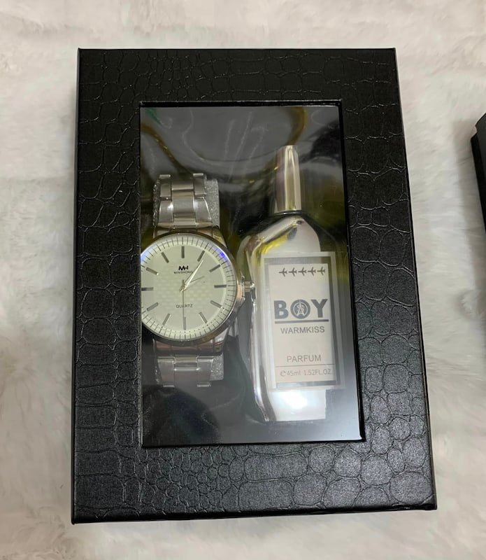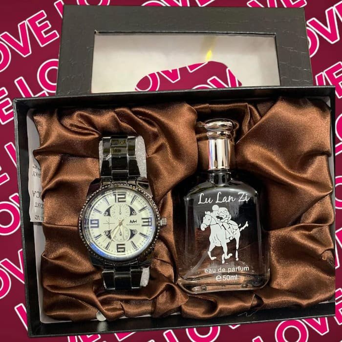 Elegir este set de perfume y reloj es optar por la combinación perfecta de estilo y funcionalidad. Ya sea como un regalo especial o una adición a tu colección personal, este set es una inversión en elegancia y calidad.