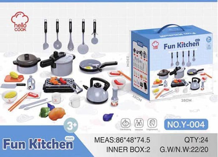 El set de utensilios de cocina incluye una variedad de herramientas de juguete como cucharas, espátulas y tenedores. Diseñado para que los niños imiten actividades de cocina, fomenta su creatividad y habilidades de juego de rol de manera divertida y segura.