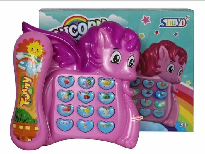 Teléfono musical a pilas, perfecto para los más pequeños, con sonidos divertidos que estimulan el aprendizaje y la diversión.