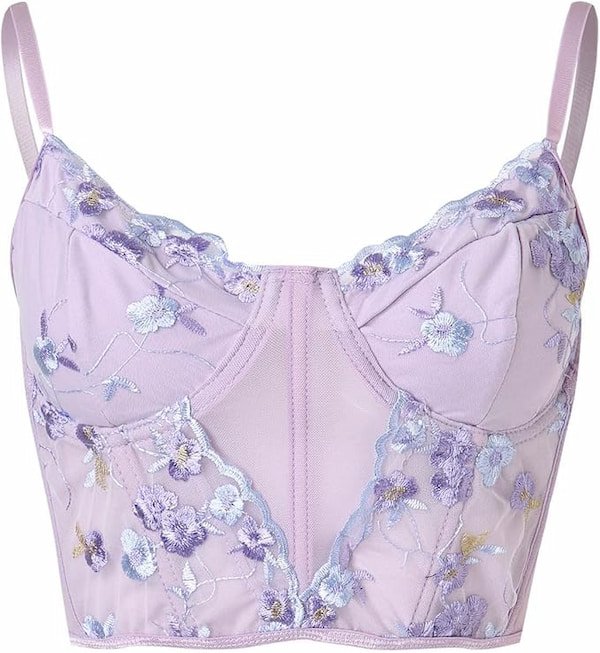 Top de Corsé con Bordado Floral para Mujer – Corto y Ajustado con Espalda Descubierta