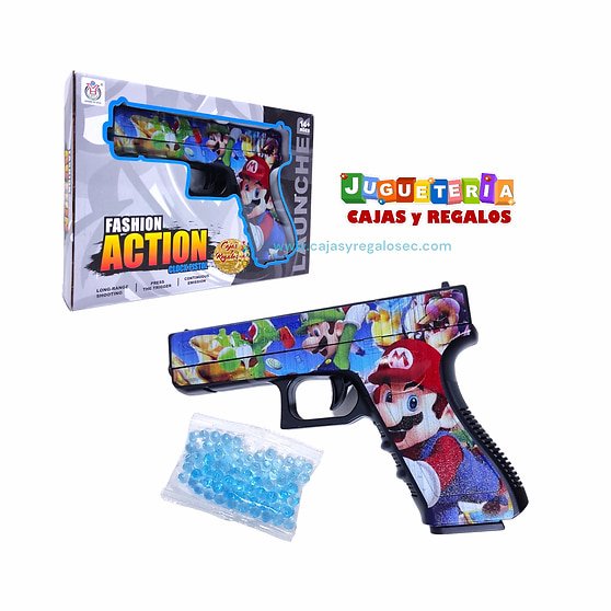 Esta pistola de juguete está fabricada con PVC de alta calidad, lo que garantiza durabilidad y seguridad durante el juego. El producto mide 28 x 31 cm, lo que lo convierte en un tamaño perfecto para que lo manipulen y disfruten tanto niños como adultos.